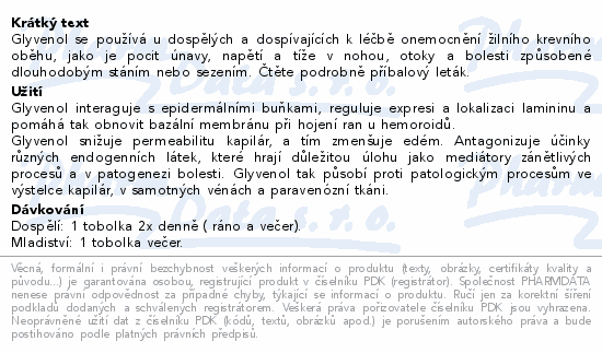Glyvenol se používá u dospělých a dospívajících k léčbě onemocnění žilního krevního oběhu, jako je pocit únavy, napětí a tíže v nohou, otoky a bolesti způsobené dlouhodobým stáním nebo sezením. Čtěte pozorně příbalový leták.