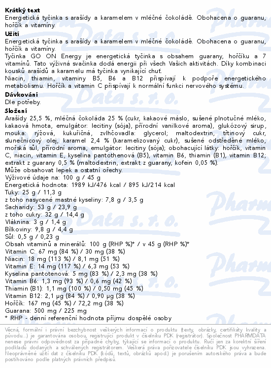 GO ON Energetická tyčinka oříšek karamel 45g