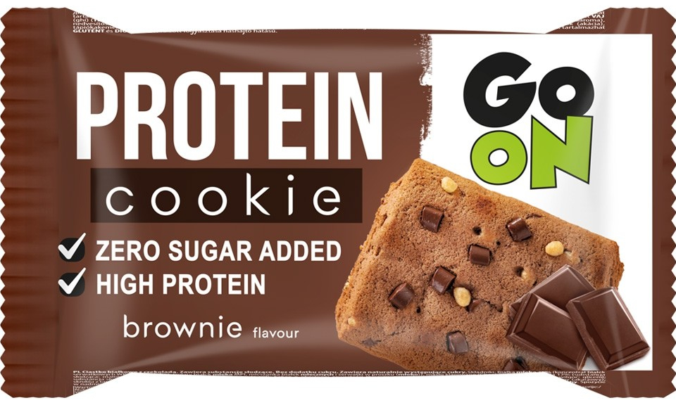 GO ON Proteinová sušenka příchuť brownie je chutná sušenka s čokoládou. Obohacená o WPC protein (kompletní protein) a MPI izolát mléčného proteinu. Vysoký obsah vlákniny. Bez palmového oleje. Vysoký obsah bílkovin - 23%.