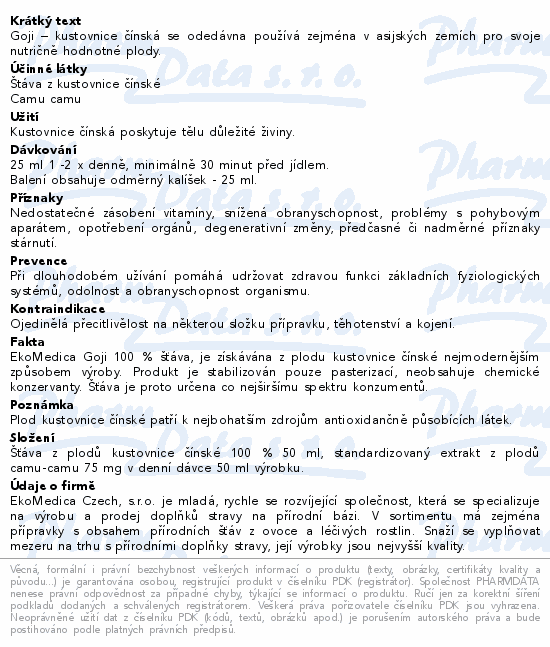 Goji Kustovnice čínská 100% šťáva 500ml EkoMedica