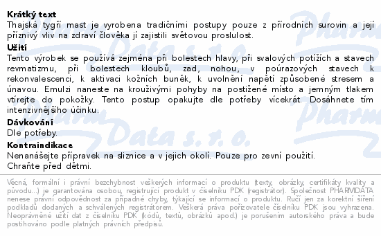 Thajská tygří mast je vyrobena tradičními postupy pouze z přírodních surovin a její příznivý vliv na zdraví člověka jí zajistili světovou proslulost.