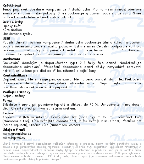 Green idea čaj bylin.Celustin při celulit. 20x1.5g