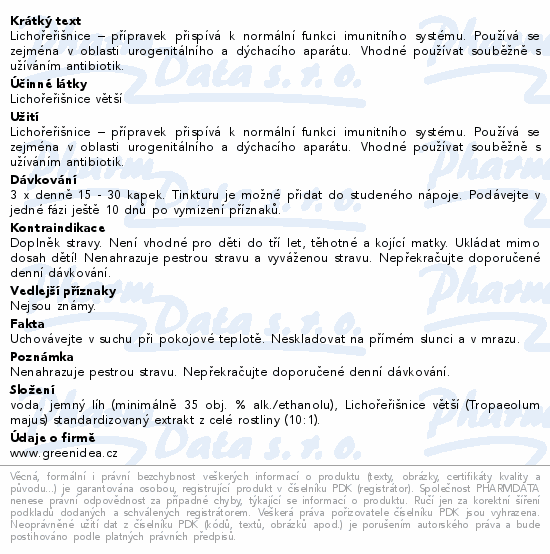 Lichořeřišnice – přípravek přispívá k normální funkci imunitního systému. Používá se zejména v oblasti urogenitálního a dýchacího aparátu. Vhodné používat souběžně s užíváním antibiotik.