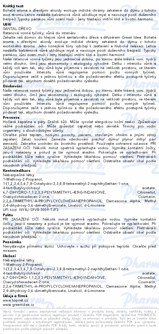 Green idea Ratan.vonné tyčinky- Santal dřevo 100ml