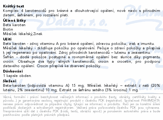 Komplex 4 karotenoidů pro krásné a dlouhotrvající opálení, nově navíc s přírodním zlatem, šafránem, pro rozzáření pleti.