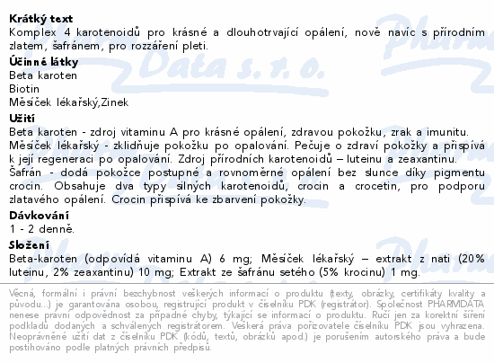 Komplex 4 karotenoidů pro krásné a dlouhotrvající opálení, nově navíc s přírodním zlatem, šafránem, pro rozzáření pleti.