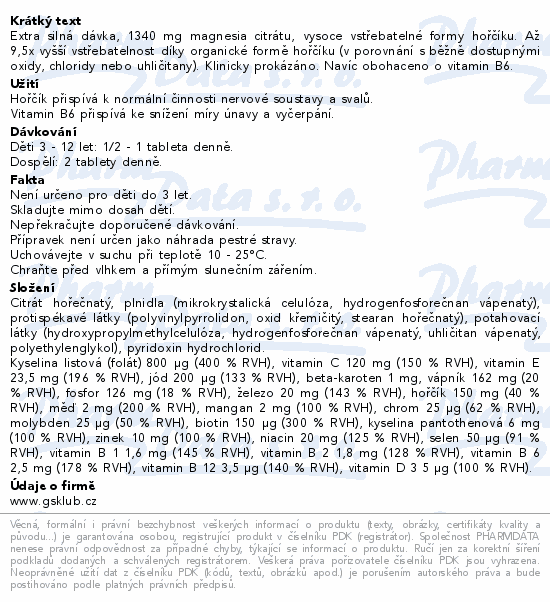 GS Magnesium citrát 1340mg+B6 tbl.50+50 dárek