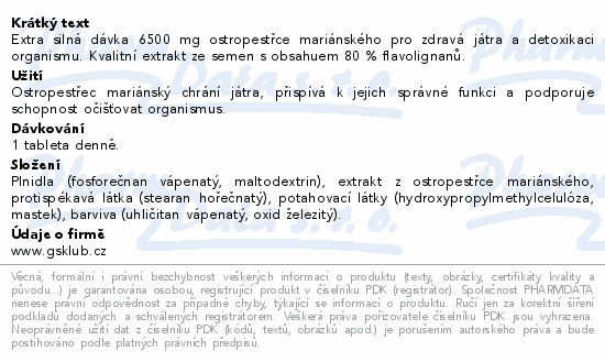 GS Ostropestřec 6500mg tbl.60+20 dárek