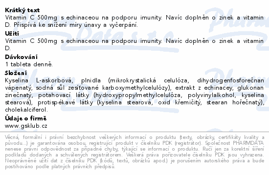 GS Vitamin C 500mg s echinaceou tbl.70+40 dárek
