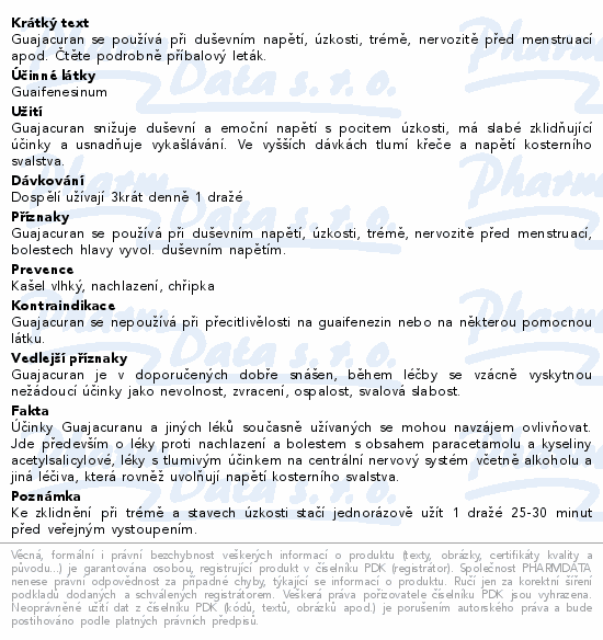 Guajacuran se používá při duševním napětí, úzkosti, trémě, nervozitě před menstruací apod. Čtěte pozorně příbalový leták.