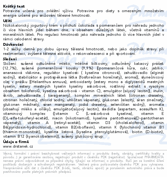 Potravina určená pro zvláštní výživu. Potravina pro diety s omezeným množstvím energie určené pro snižování tělesné hmotnosti.