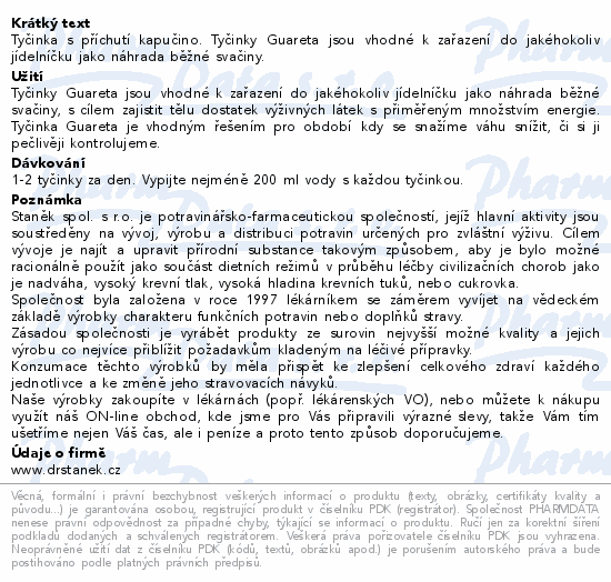 Tyčinka s příchutí kapučino. Tyčinky Guareta jsou vhodné k zařazení do jakéhokoliv jídelníčku jako náhrada běžné svačiny.