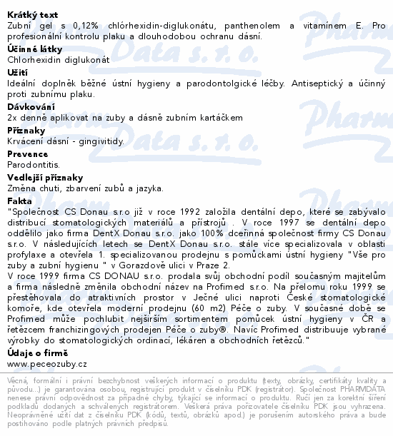Zubní gel s 0,12% chlórhexidin-diglukonátu, panthenolem a vitamínem E. Pro profesionální kontrolu plaku a dlouhodobou ochranu dásní.