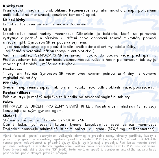 První depotní vaginální probiotikum. Regenerace vaginální mikroflóry, např. po užívání antibiotik, silné menstruaci, používání tampónů apod.