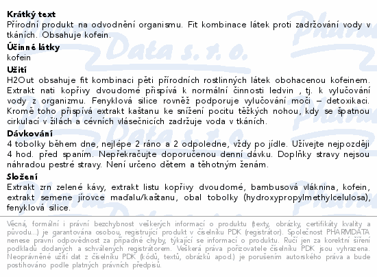 Přírodní produkt na odvodnění organismu. Fit kombinace látek proti zadržování vody v tkáních. Obsahuje kofein.
