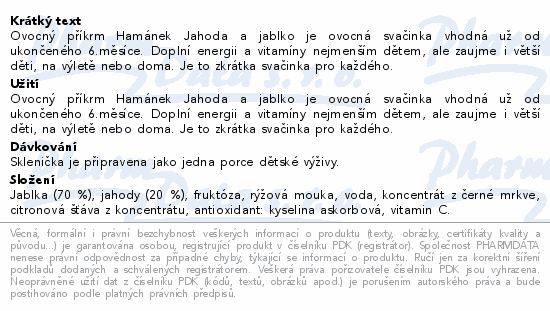Ovocný příkrm Hamánek Jahoda a jablko je ovocná svačinka vhodná už od ukončeného 6.měsíce. Doplní energii a vitamíny nejmenším dětem, ale zaujme i větší děti, na výletě nebo doma. Je to zkrátka svačinka pro každého.