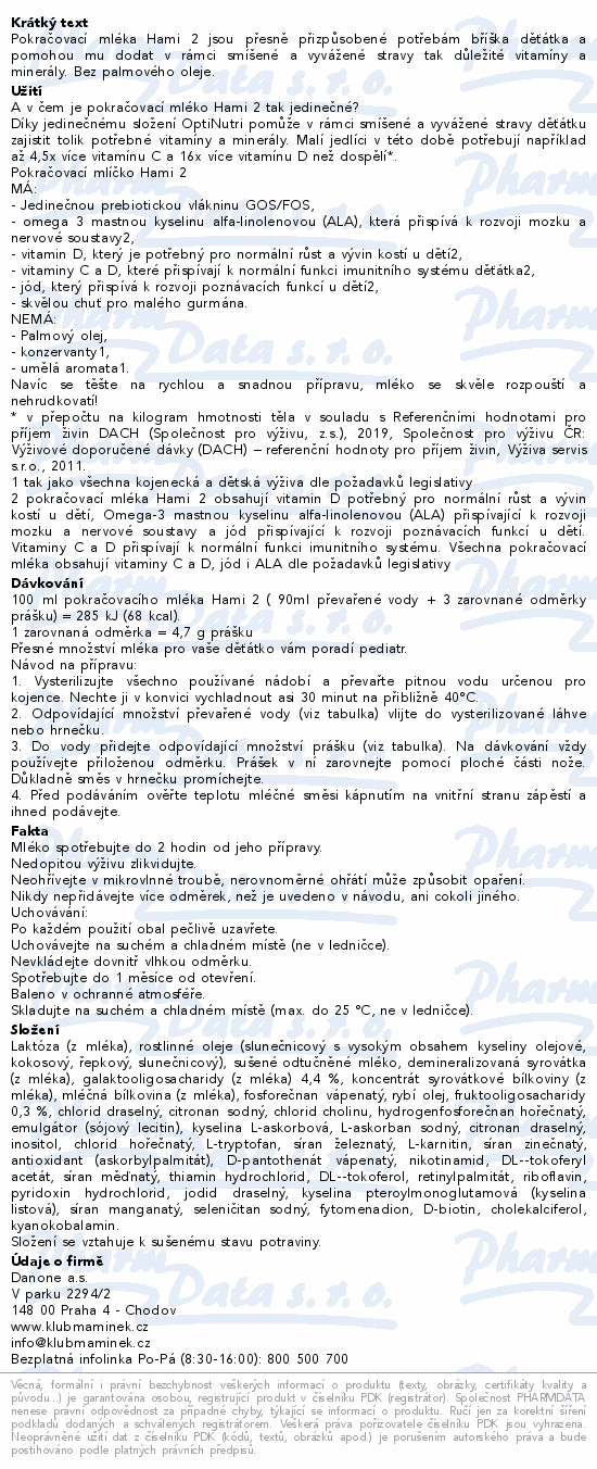 Pokračovací mléka Hami 2 jsou přesně přizpůsobené potřebám bříška děťátka a pomohou mu dodat v rámci smíšené a vyvážené stravy tak důležité vitamíny a minerály. Bez palmového oleje.