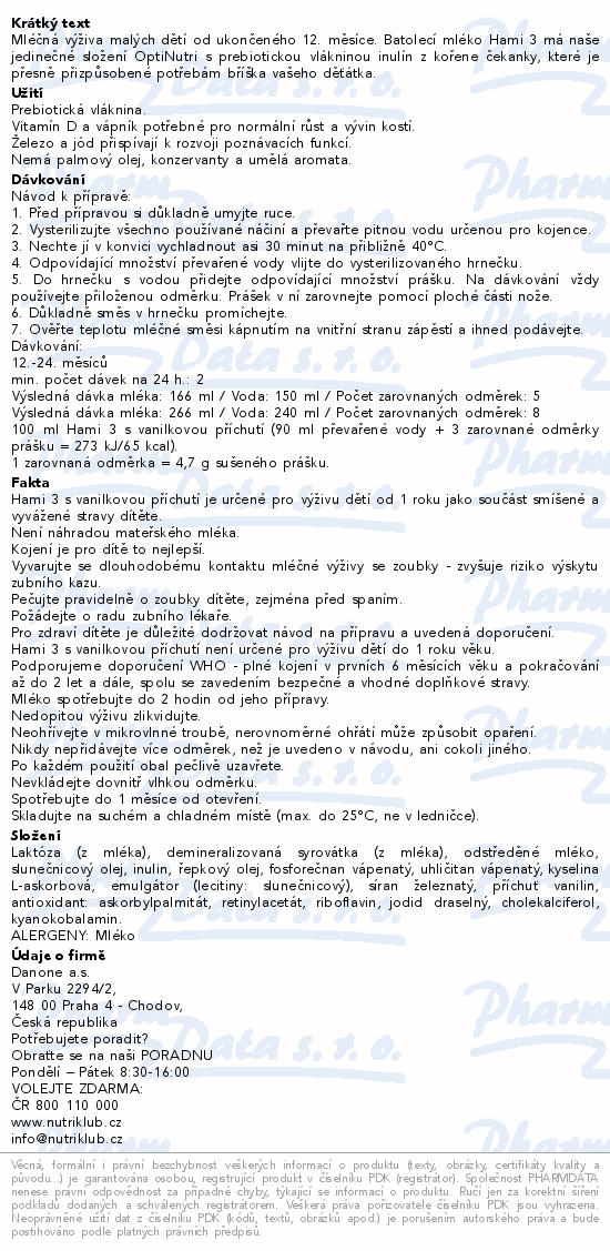 Mléčná výživa malých dětí od ukončeného 12. měsíce. Batolecí mléko Hami 3 má naše jedinečné složení OptiNutri s prebiotickou vlákninou inulín z kořene čekanky, které je přesně přizpůsobené potřebám bříška vašeho děťátka.
