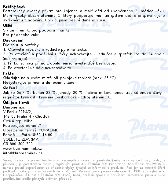 Pasterovaný ovocný příkrm pro kojence a malé děti od ukončeného 6. měsíce věku. Mám vysoký obsah vitamínu C, který podporuje imunitní systém dětí a přispívá k jeho správnému fungování. Co víc, jsem bez přidaného cukru!