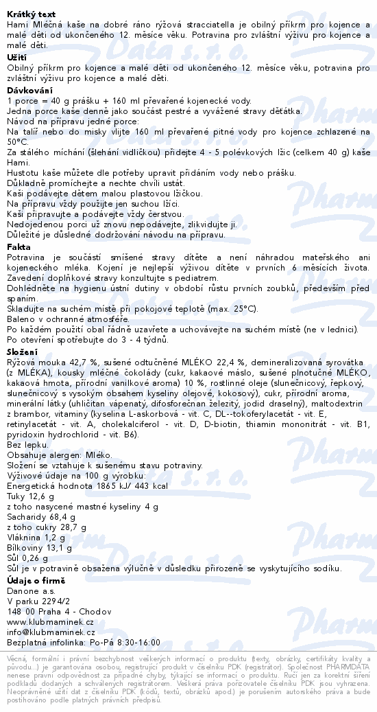 Hami Ml.kaše na dobré ráno rýž.stracciat.210g 12m+