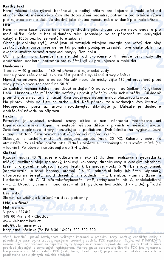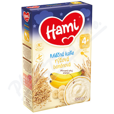 Hami mléčná kaše rýžová banánová je obilný příkrm pro kojence a malé děti od ukončeného 4. měsíce věku vždy dle doporučení pediatra, potravina pro zvláštní výživu pro kojence a malé děti. Je vhodná jako chutná večeře nebo snídaně pro malá bříška.