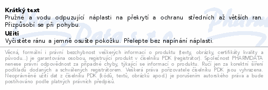 Pružné a vodu odpuzující náplasti na překrytí a ochranu středních až větších ran. Přizpůsobí se při pohybu.