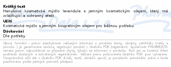 Hanušovo kosmetické mýdlo levandule s jemným kosmetickým olejem, který má zvláčňující a ochranný efekt.
