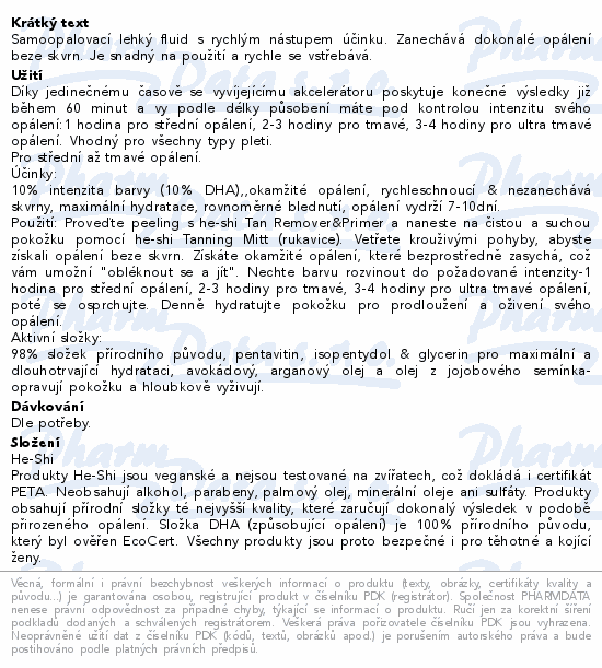 Samoopalovací lehký fluid s rychlým nástupem účinku. Zanechává dokonalé opálení beze skvrn. Je snadný na použití a rychle se vstřebává.