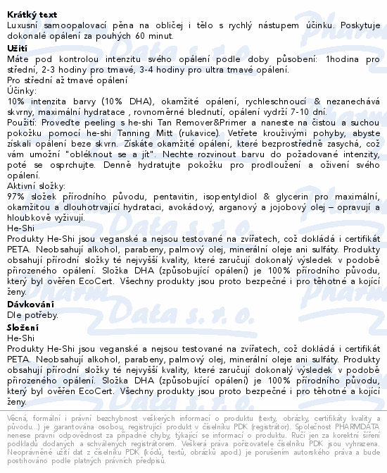 Luxusní samoopalovací pěna na obličej i tělo s rychlý nástupem účinku. Poskytuje dokonalé opálení za pouhých 60 minut.