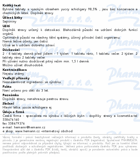 Bylinné tablety s vysokým obsahem yuccy schidigery 98,5% , jsou bez konzervace a chemických látek. Doplněk stravy.