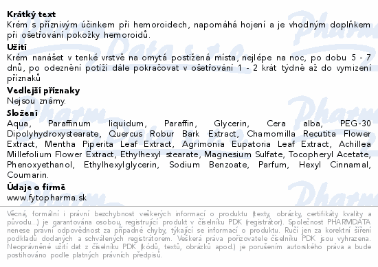 Krém s příznivým účinkem při hemoroidech, napomáhá hojení a je vhodným doplňkem při ošetřování pokožky hemoroidů.