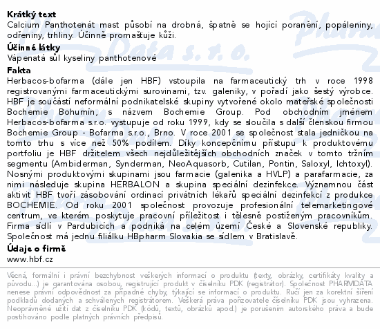 Calcium Panthotenát mast působí na drobná, špatně se hojící poranění, popáleniny, odřeniny, trhliny. Účinně promašťuje kůži.
