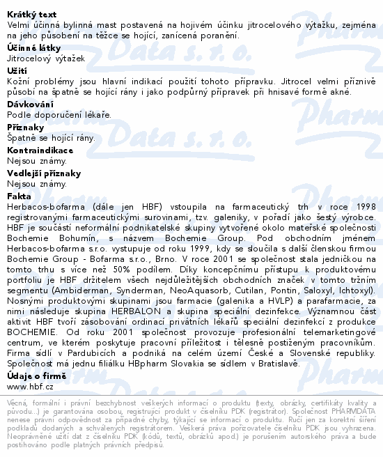 Velmi účinná bylinná mast postavená na hojivém účinku jitrocelového výtažku, zejména na jeho působení na těžce se hojící, zanícená poranění.