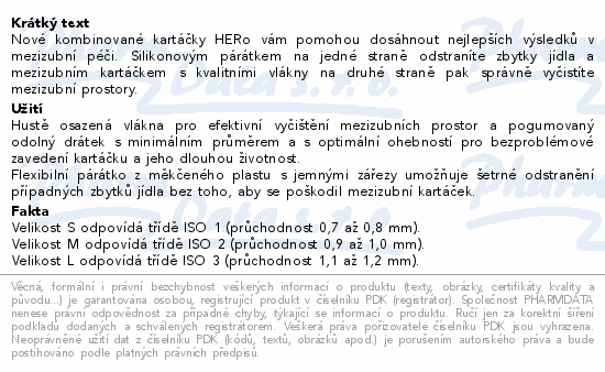 Nové kombinované kartáčky HERo vám pomohou dosáhnout nejlepších výsledků v mezizubní péči. Silikonovým párátkem na jedné straně odstraníte zbytky jídla a mezizubním kartáčkem s kvalitními vlákny na druhé straně pak správně vyčistíte mezizubní prostory.