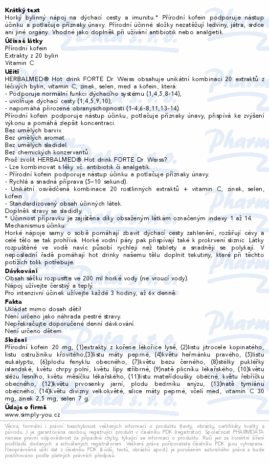 HERBALMED HotDrink Forte Dr.Weiss s kofein.24sáčků