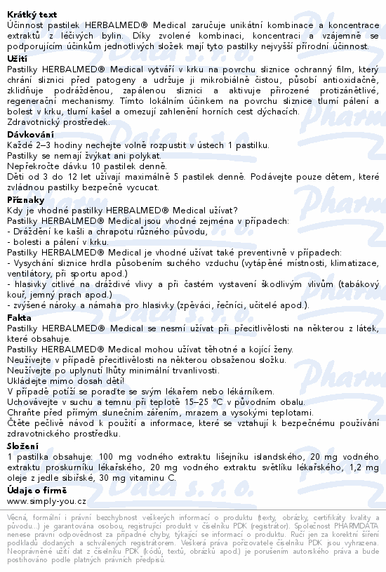 Účinnost pastilek HERBALMED® Medical zaručuje unikátní kombinace a koncentrace extraktů z léčivých bylin. Díky zvolené kombinaci, koncentraci a vzájemně se podporujícím účinkům jednotlivých složek mají tyto pastilky nejvyšší přírodní účinnost.