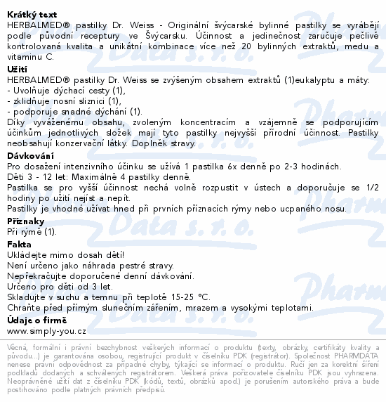 HERBALMED® pastilky Dr. Weiss - Originální švýcarské bylinné pastilky se vyrábějí podle původní receptury ve Švýcarsku. Účinnost a jedinečnost zaručuje pečlivě kontrolovaná kvalita a unikátní kombinace více než 20 bylinných extraktů, medu a vitaminu C.