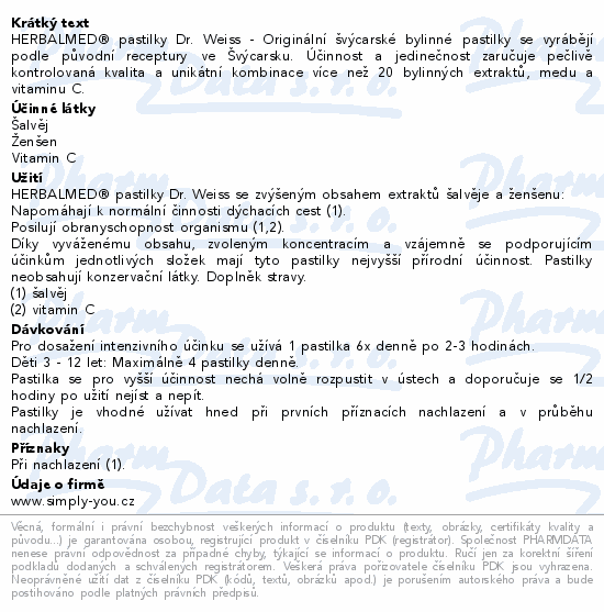 HERBALMED® pastilky Dr. Weiss - Originální švýcarské bylinné pastilky se vyrábějí podle původní receptury ve Švýcarsku. Účinnost a jedinečnost zaručuje pečlivě kontrolovaná kvalita a unikátní kombinace více než 20 bylinných extraktů, medu a vitaminu C.