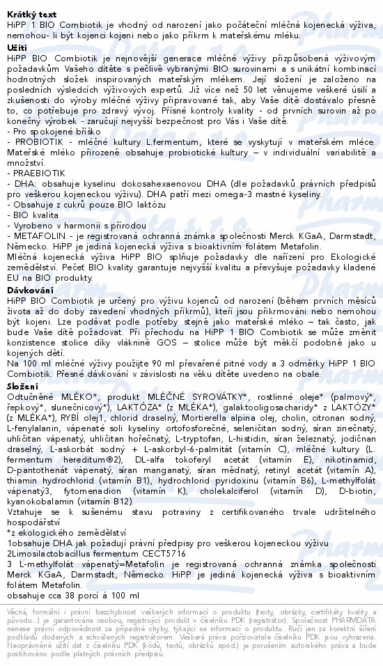 HiPP 1 Combiotik kojenecké mléko BIO 500g