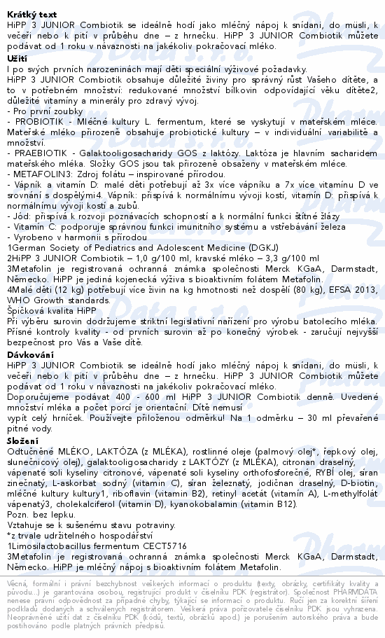 HiPP 3 Junior Combiotik mléčná výživa 4x600g