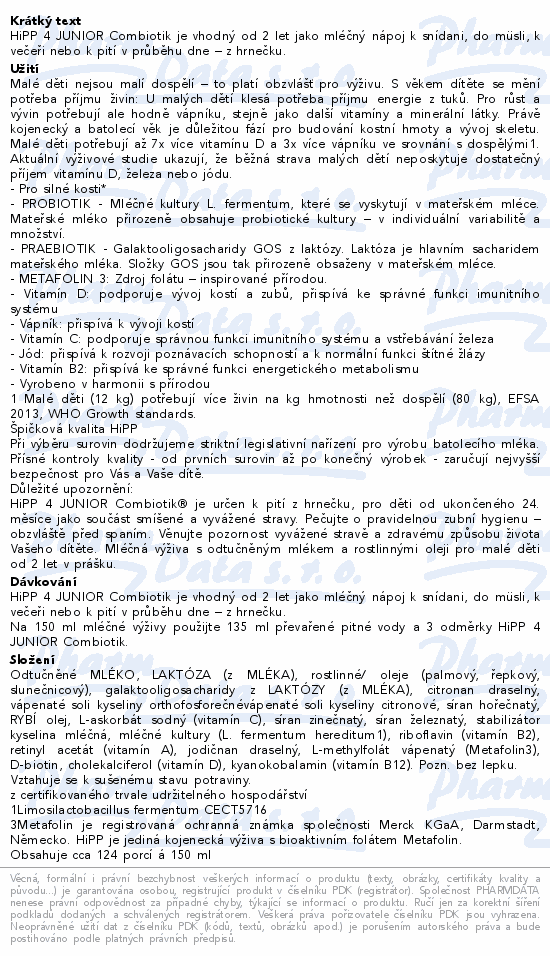 HiPP 4 JUNIOR Combiotik je vhodný od 2 let jako mléčný nápoj k snídani, do müsli, k večeři nebo k pití v průběhu dne – z hrnečku.