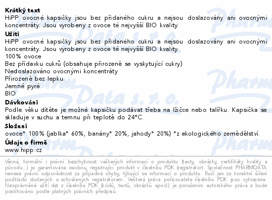 HiPP ovocné kapsičky jsou bez přidaného cukru a nejsou doslazovány ani ovocnými koncentráty. Jsou vyrobeny z ovoce té nejvyšší BIO kvality.