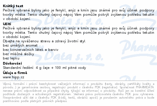 Pečlivě vybrané byliny jako je fenykl, anýz a kmín jsou známé pro svůj účinek podpory tvorby mléka. Tento chutný čajový nápoj Vám pomůže pokrýt zvýšenou potřebu tekutin v období kojení.