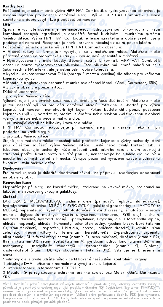 HiPP PRE HA Combiotik kojenecká výživa 600g