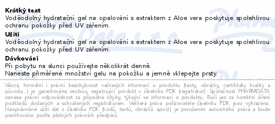 Voděodolný hydratační gel na opalování s extraktem z Aloe vera poskytuje spolehlivou ochranu pokožky před UV zářením.