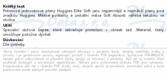 Prémiové jednorázové pleny Huggies Elite Soft jsou nejjemnější a nejměkčí pleny pod značkou Huggies. Měkké polštářky a unikátní vrstva Soft Absorb vstřebá tekutinu ve chvilce.