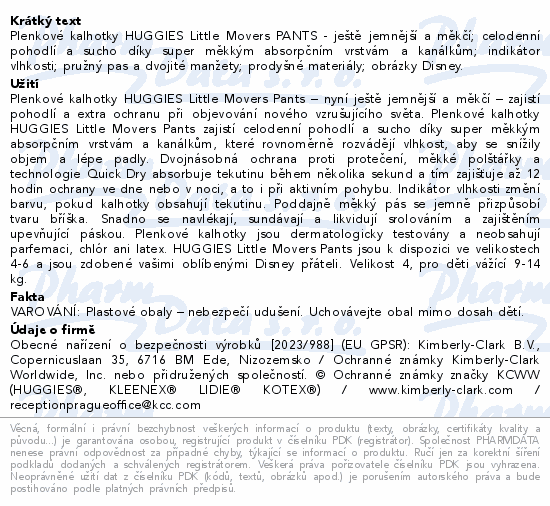HUGGIES Little Movers Pants 4 9-14kg 120ks box
