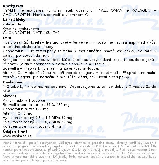 HYALFIT je exkluzivní komplex látek obsahující HYALURONAN + KOLAGEN + CHONDROITIN. Navíc s boswelií a vitaminem C.