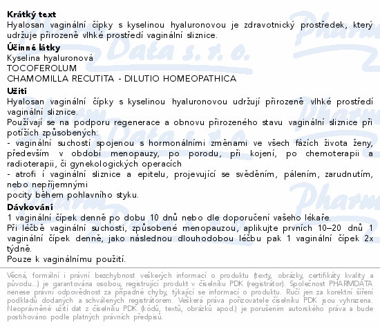 Hyalosan vaginální čípky s kyselinou hyaluronovou je zdravotnický prostředek, který udržuje přirozeně vlhké prostředí vaginální sliznice.