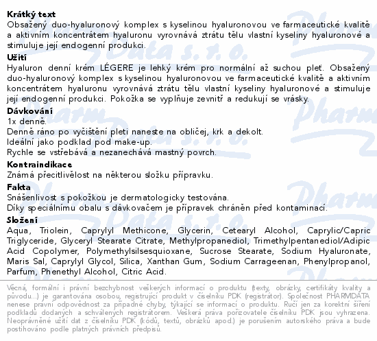 Hyaluron denní krém LÉGERE 50ml